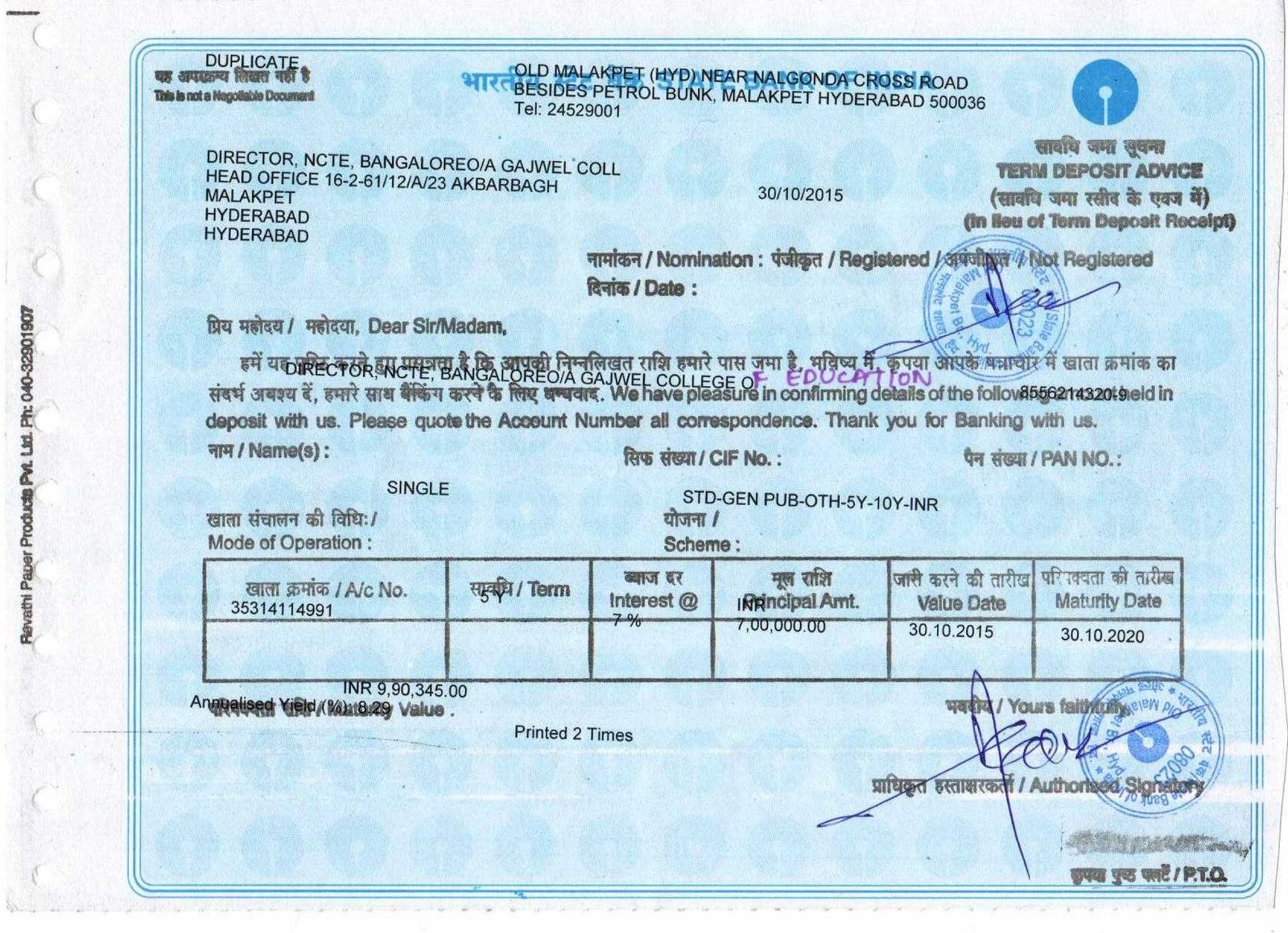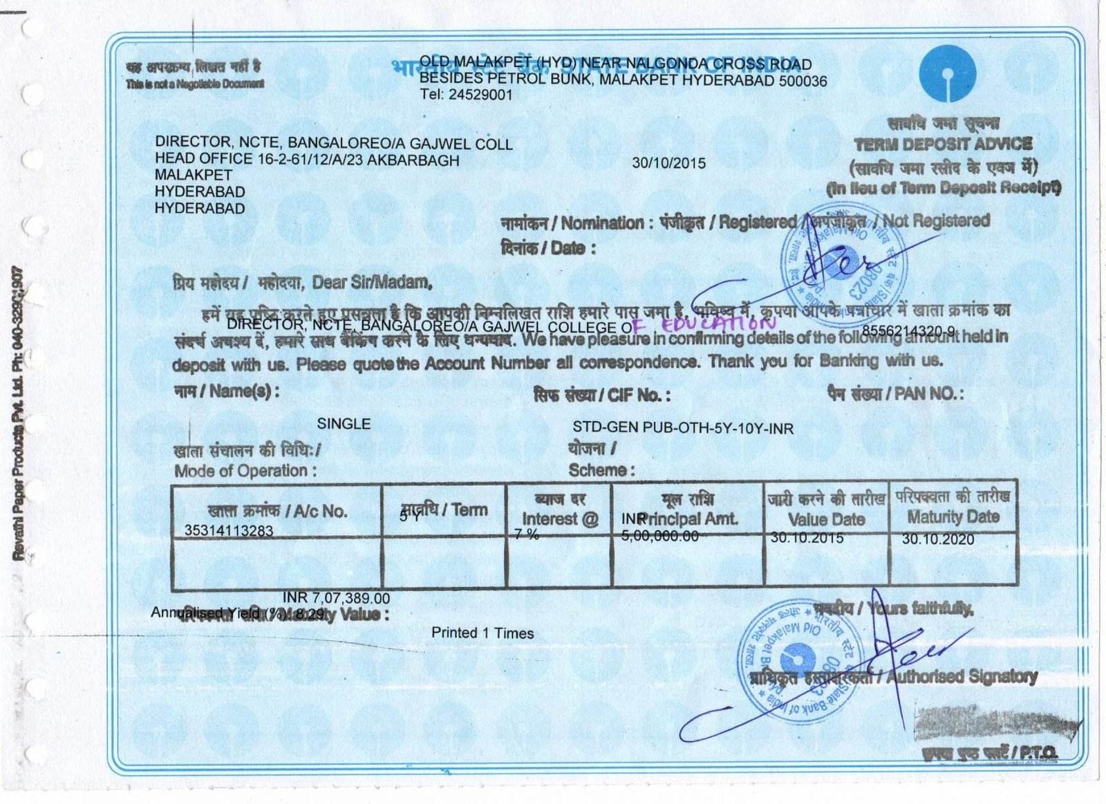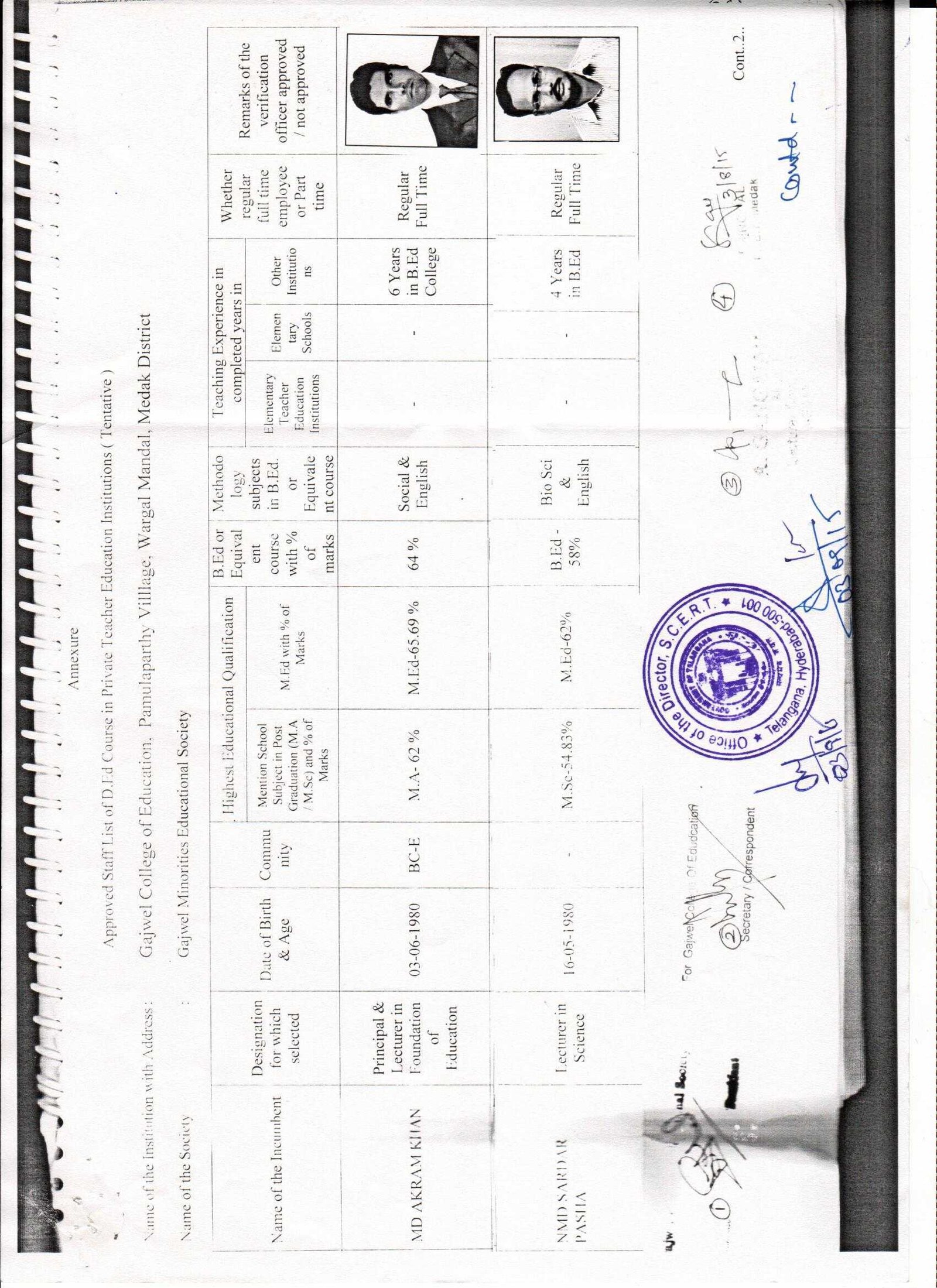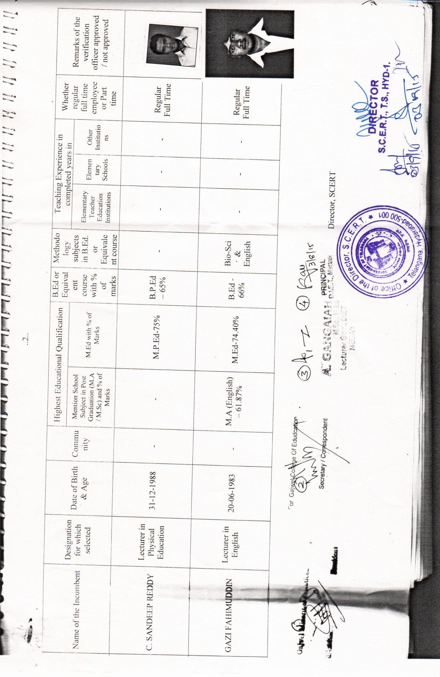 B.Ed Faculty Approved by OU Signature by Registrar B.Ed Faculty Approved by OU-SSC Building Approval Plan B.Ed & D.Ed Building Complition Certificate B.Ed & D.Ed D.Ed FD's Andhra Bank 3 & 5 Lakhs Fire Saifty Certificate Gajwel College Land Document 1 Gajwel College Land Document 2 Land Conversion Certificate B.Ed & D.Ed Land Document B.Ed Land Use Certificate B.Ed & D.Ed Minority Status Certificate B.Ed Minority Status Certificate D.Ed NCTE 1st Approval 2002 for B.Ed NCTE Approval 2012 for D.Ed NCTE Approval 2015-2016 for B.Ed OU Affiliation 2015-2016 OU Affiliation 2016-2017 SCERT Affiliation 2015-16 SCERT Affiliation List - 163 Colleges SCERT Approval D.Ed 2014-15 Survey No.s Translation B.Ed Fixed Deposit - I B.Ed Fixed Deposit - II D.Ed Faculty SCERT Old D.Ed Faculty SCERT Approval D.Ed Faculty SCERT Approval